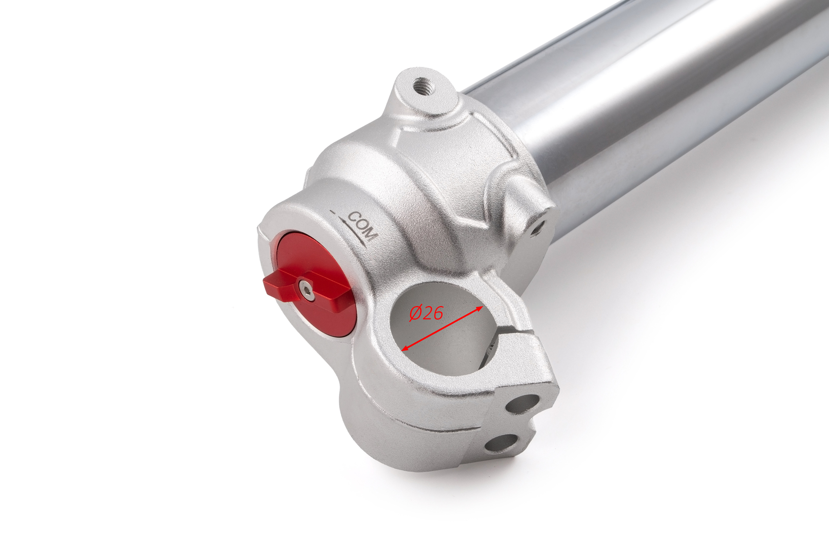 Перья вилки для полноразмерных эндуро мотоциклов с шасси К8. Длина 910 мм, диаметр пера 48 мм. Однокартриджная конструкция с регулировками сжатия и отбоя. Имеют клапан для сброса воздуха и крепление под суппорт типа KTM.