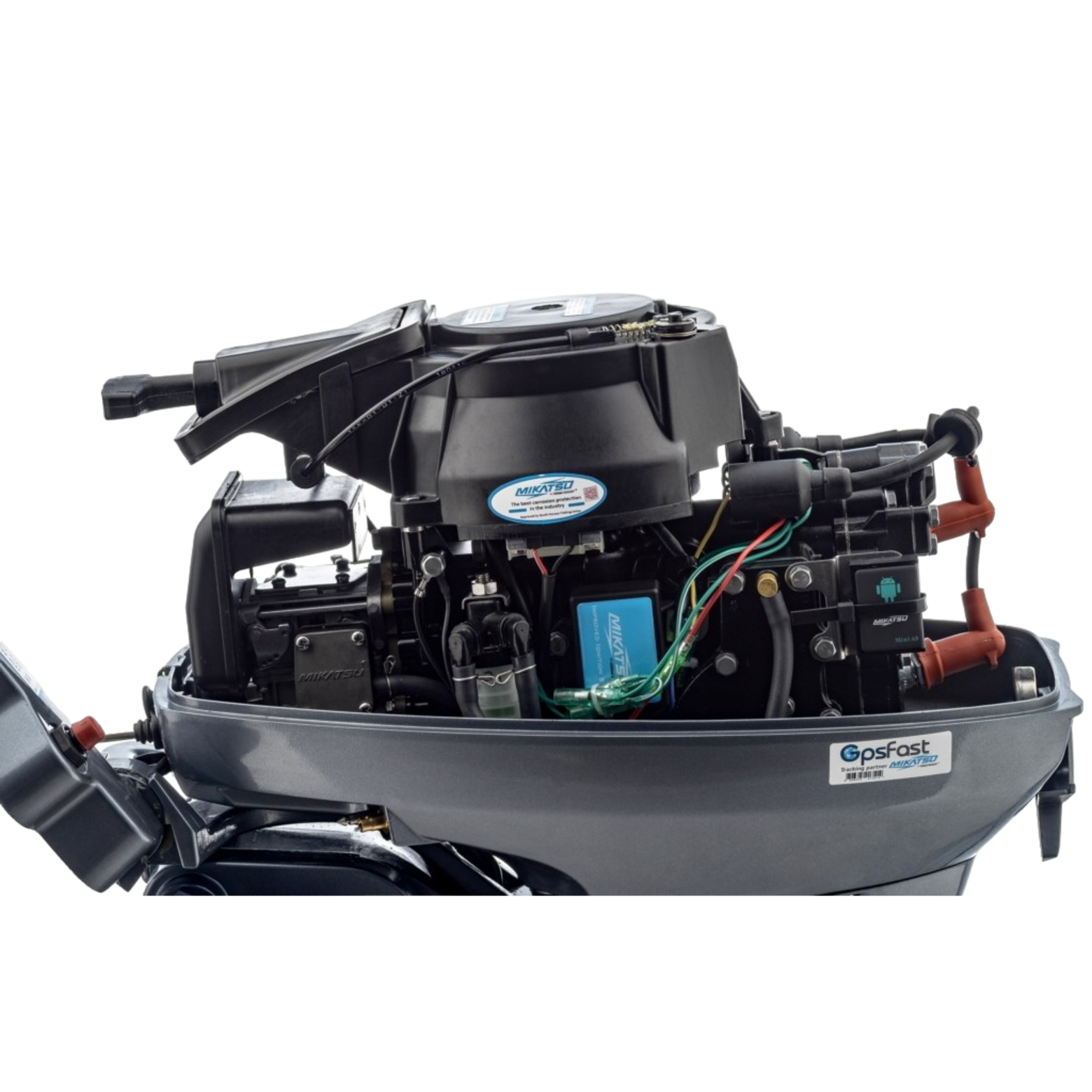 В качестве дополнительных опций в комплектацию лодочного мотора внедрена 12V розетка. 12Vрозетка позволит Вам с легкостью подключать дополнительное навигационное оборудование или приборы, а также заряжать всевозможные гаджеты и устройства, находясь в автономных походах прямо на воде.Подвесной лодочный мотор Mikatsu M15FHS – полный аналог Японских двигателей. Все их запчасти взаимозаменяемы, в связи с чем эксплуатация и техническое обслуживание оборудования существенно упрощается.Данный ПЛМ отличается от моторов конкурентов не только компактными размерами и малым весом, но также отменным качеством, надёжностью и передовыми технологиями, реализованными в данных подвесных моторах, которыми славится вся продукция компании Mikatsu. Кроме того, лодочный мотор Микатсу отличается низким уровнем вибрации и шума, а также мощным генератором, что обеспечивает максимальный заряд аккумуляторов. Планируете ли Вы спокойно рыбачить на своей надувной лодке или использовать подвесной мотор в коммерческой сфере, Вы найдёте в двухтактном семействе Mikatsu подходящего для себя надёжного спутника.Системы защиты и безопасности:– защита от запуска при включенной трансмиссии– чека для аварийного выключения мотораОсобенности всех двигателей Микатсу – это высокие технологии и простота в эксплуатации:– система контроля дроссельной заслонки облегчает управление режимами мотора– ручной стартер с длинным шнуром делает запуск мотора легким и стабильным– генератор большой мощности и выпрямитель для зарядки аккумуляторной батареи– настраиваемый фрикцион в системе управления и плавник-компенсатор, снижающий эффект увода мотора– модели могут оснащаться системой дистанционного управления– режим «мелководья» (угол наклона мотора), 6 положений– выхлоп через ступицу винта снижает общий шум при работе мотора– наличие термостата в системе охлаждения стабилизирует температурный режим двигателя– специальный морской алюминиевый сплав обеспечивает долгую работу мотора и отсутствие коррозии– цинковые протекторы защищают мотор от коррозии– внешние топливные баки со шлангом, фитингами и системой подачи топлива