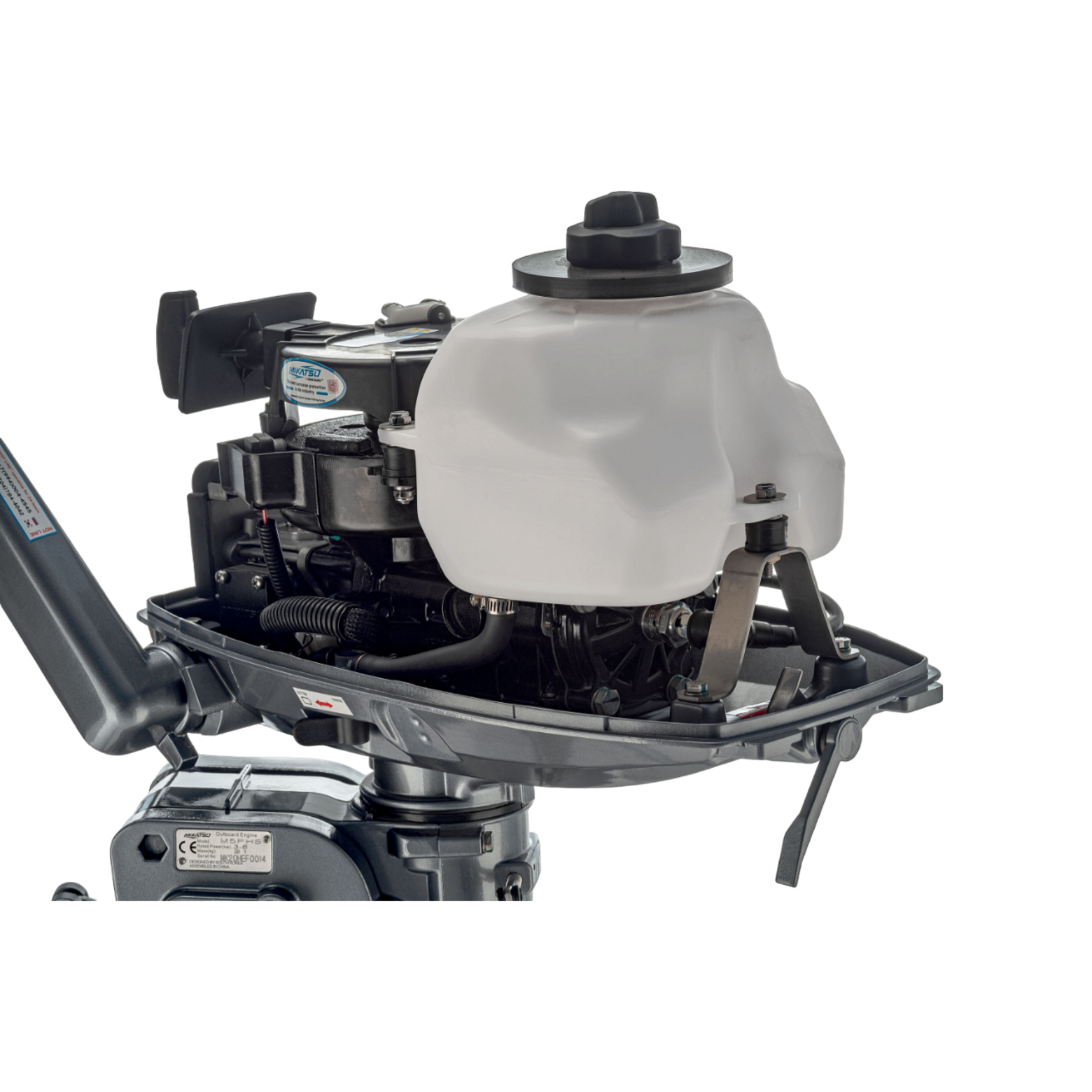 Подвесной лодочный мотор Mikatsu M5FHS – полный аналог японского лодочного мотора Tohatsu. Все их запчасти взаимозаменяемы, в связи с чем эксплуатация и техническое обслуживание оборудования существенно упрощается.Лодочный мотор подходит для разных целей. Он может послужить и основным двигателем на небольшой лодке и дополнительным – на катере. Одноцилиндровая двухтактная конструкция данного ПЛМ делает двигатель легким, компактным и недорогим. Вместе с тем, лодочный мотор данной модели обладает всеми преимуществами японских двухтактников: имеются три передачи, электронное зажигание, может использоваться на мелководьях. Несмотря на демократичную цену, мотор для лодок ПВХ отличается долгим сроком службы. Он изготовлен из прочных и легких сплавов, устойчивых к коррозии. Уровень вибрации лодочного мотора сведен к минимуму. Цифровая система зажигания (CDI) обеспечивает быстрый старт. Петлевая продувка обеспечивает ровную работу мотора и небольшой расход топлива. Системы защиты и безопасности:– защита от запуска при включенной трансмиссии– чека для аварийного выключения мотораОсобенности всех двигателей Микатсу – это высокие технологии и простота в эксплуатации:– система контроля дроссельной заслонки облегчает управление режимами мотора– ручной стартер с длинным шнуром делает запуск мотора легким и стабильным– настраиваемый фрикцион в системе управления и плавник-компенсатор, снижающий эффект увода мотора– модели могут оснащаться системой дистанционного управления– режим «мелководья» (угол наклона мотора), 6 положений– выхлоп через ступицу винта снижает общий шум при работе мотора– наличие термостата в системе охлаждения стабилизирует температурный режим двигателя– специальный морской алюминиевый сплав обеспечивает долгую работу мотора и отсутствие коррозии– цинковые протекторы защищают мотор от коррозии